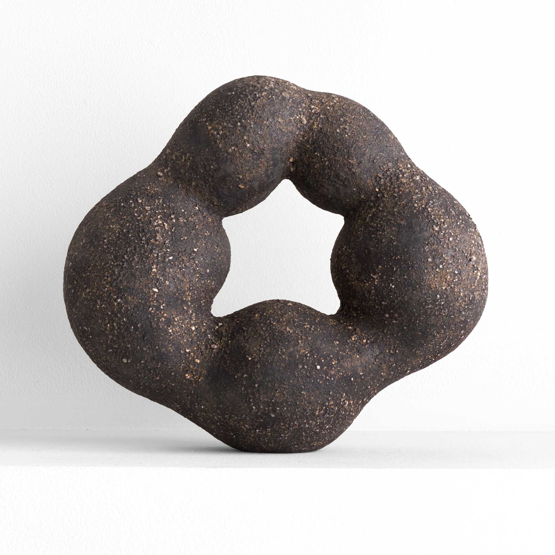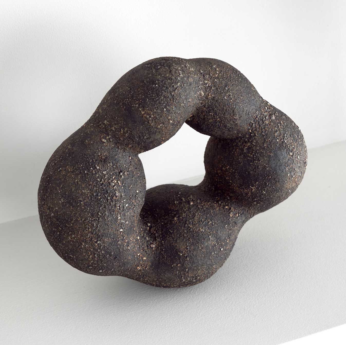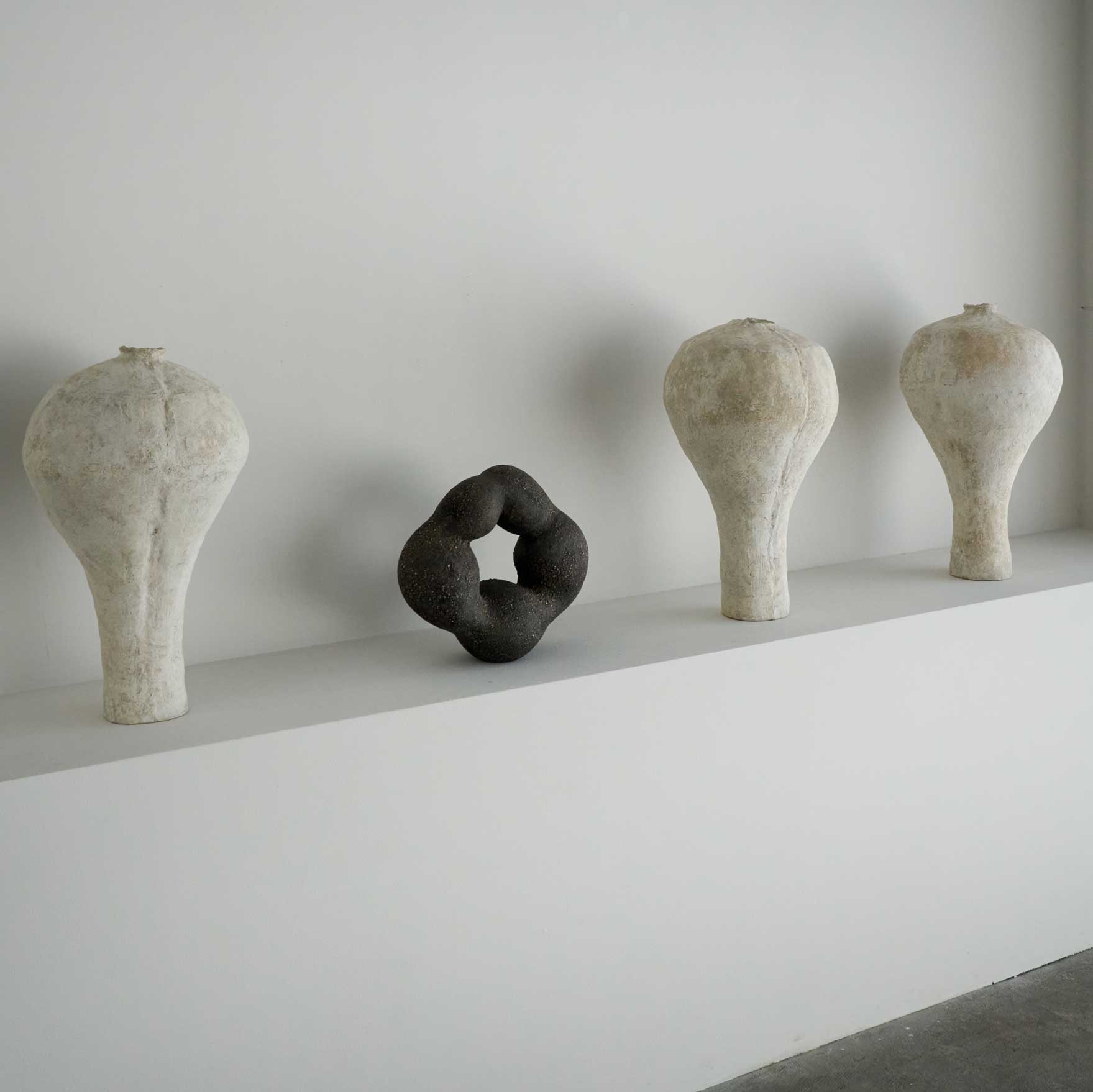 二千年以上の時を超えて花を咲かせた「大賀蓮」の物語に心を打たれ、「土の種子」をテーマに制作を続ける中で生まれた、まさに中に種子が入っているかのようなオブジェです。
