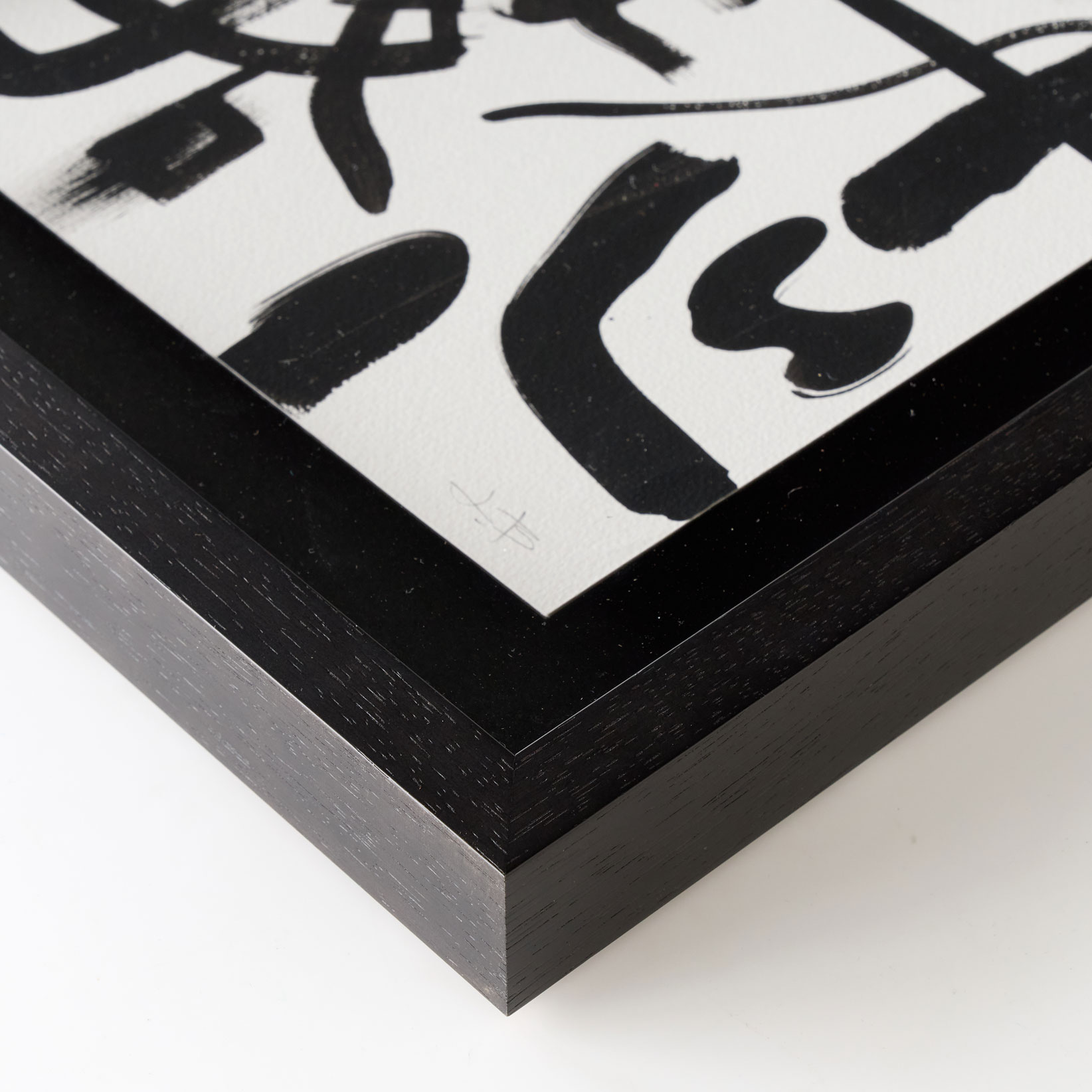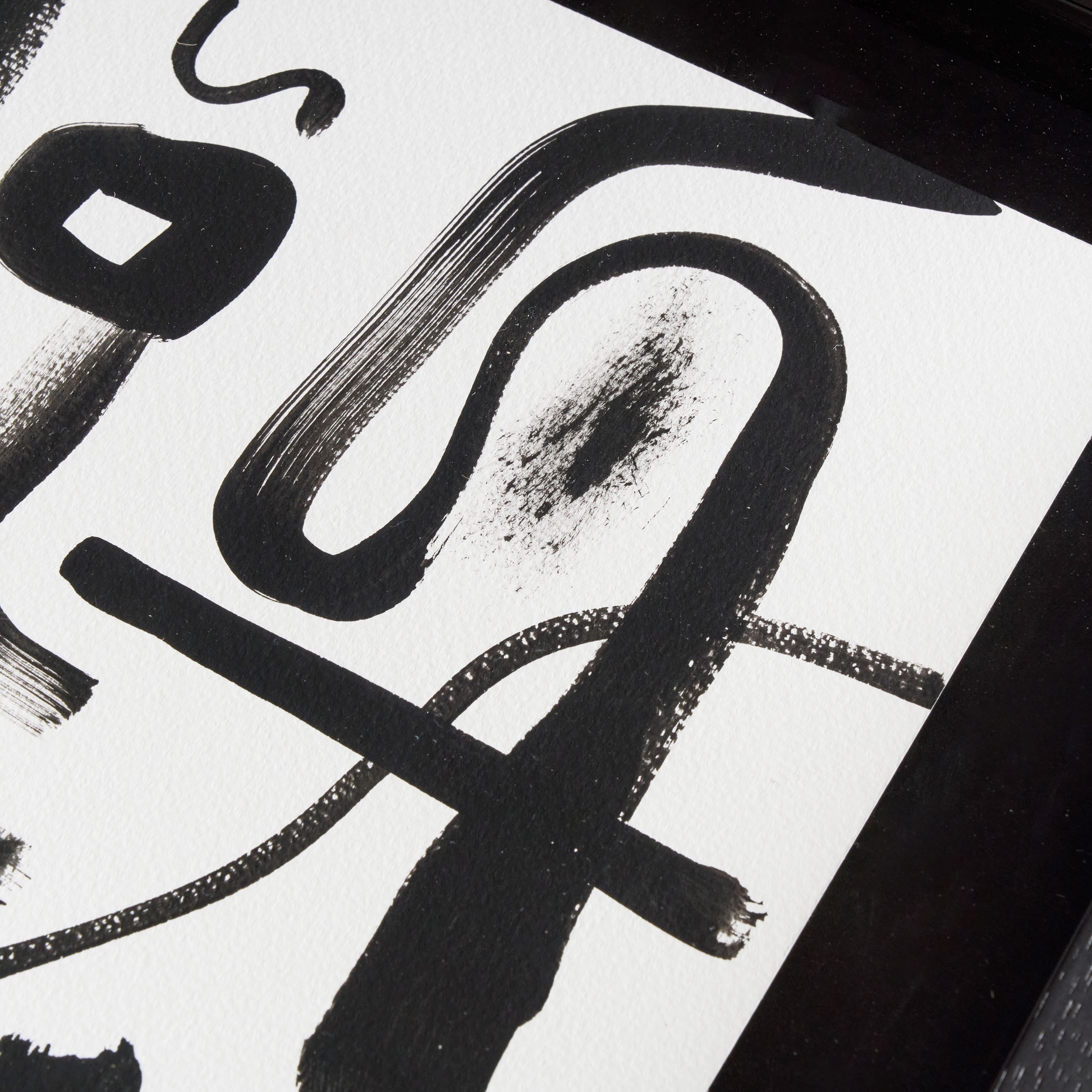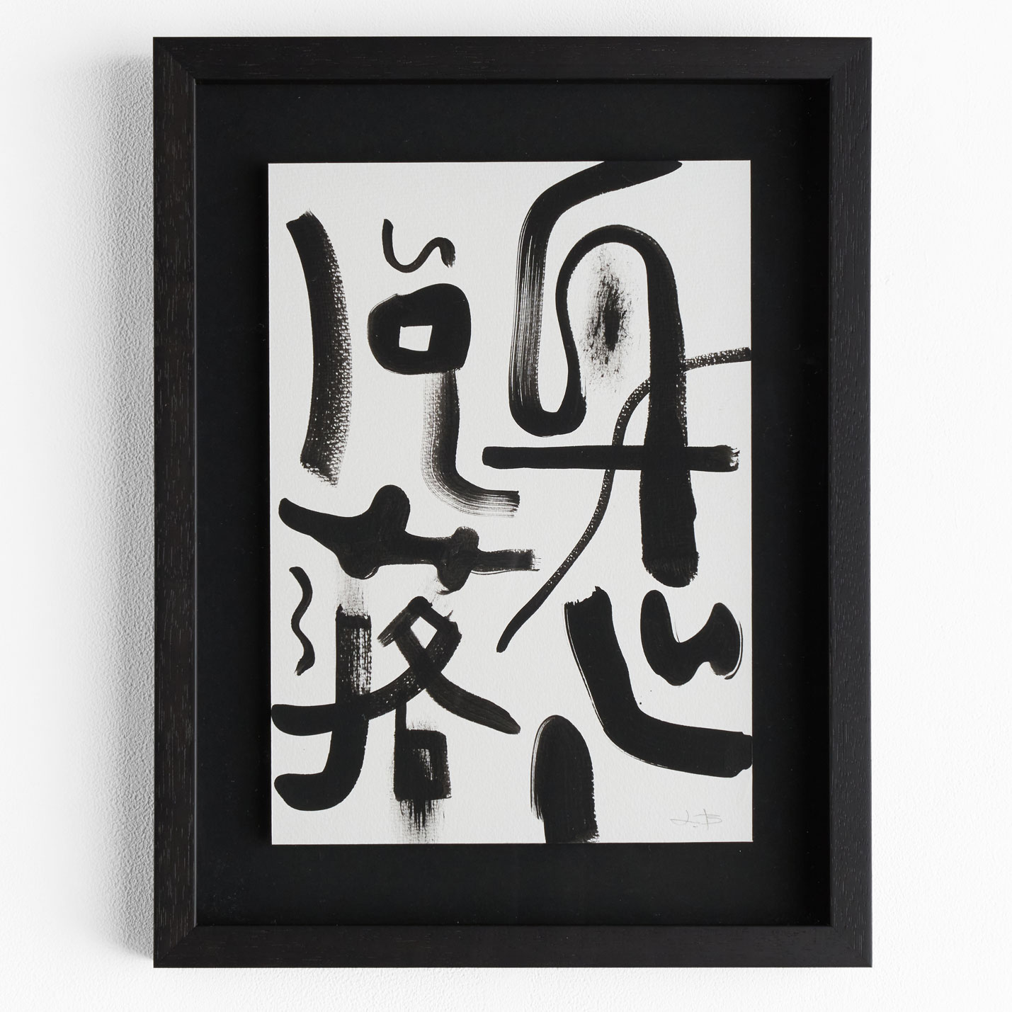墨色で書かれたドローイング、額付き。