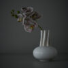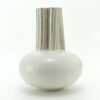 薄い土の柔らかい曲線を表現した花器。ゆったりとしたフォルムに銀彩を施した首がシャープさを与えています。口が波打っているので、植物が生けやすくなっています。