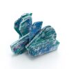 Polyester fabric is soaked in resin pigment with thickener adjustment, then both sides are dyed in several layers, and the textured pieces are layered and connected with thread. The shape and color give it a cool, icy feel.