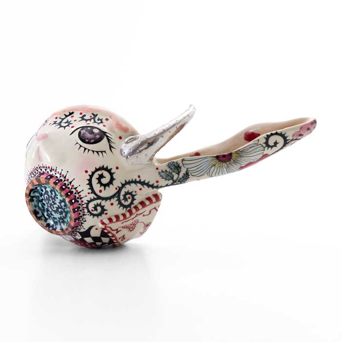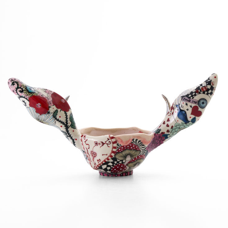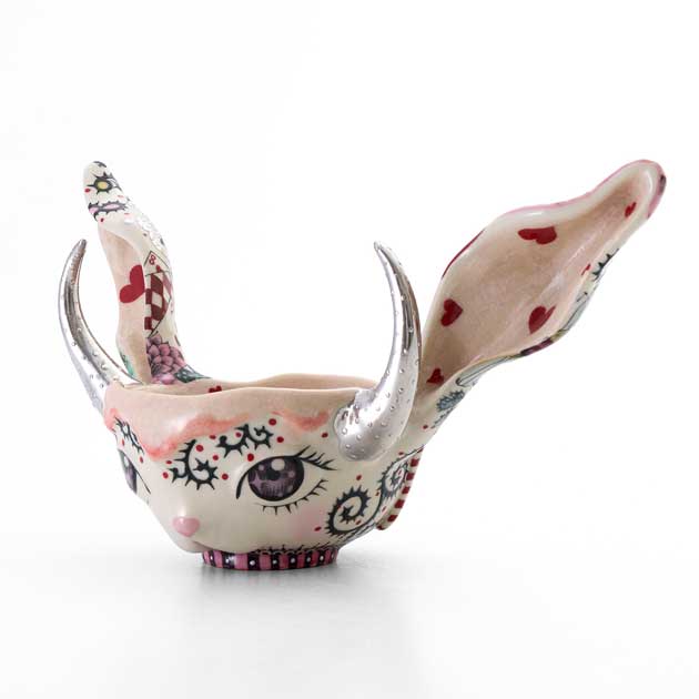 This matcha bowl features large rabbit ears. The long ears draw the viewer’s gaze while symbolizing the rabbit’s sensitivity to its surroundings. Within its playful form, the piece evokes vitality, pure sensibility, and a sense of hope for new beginnings.
