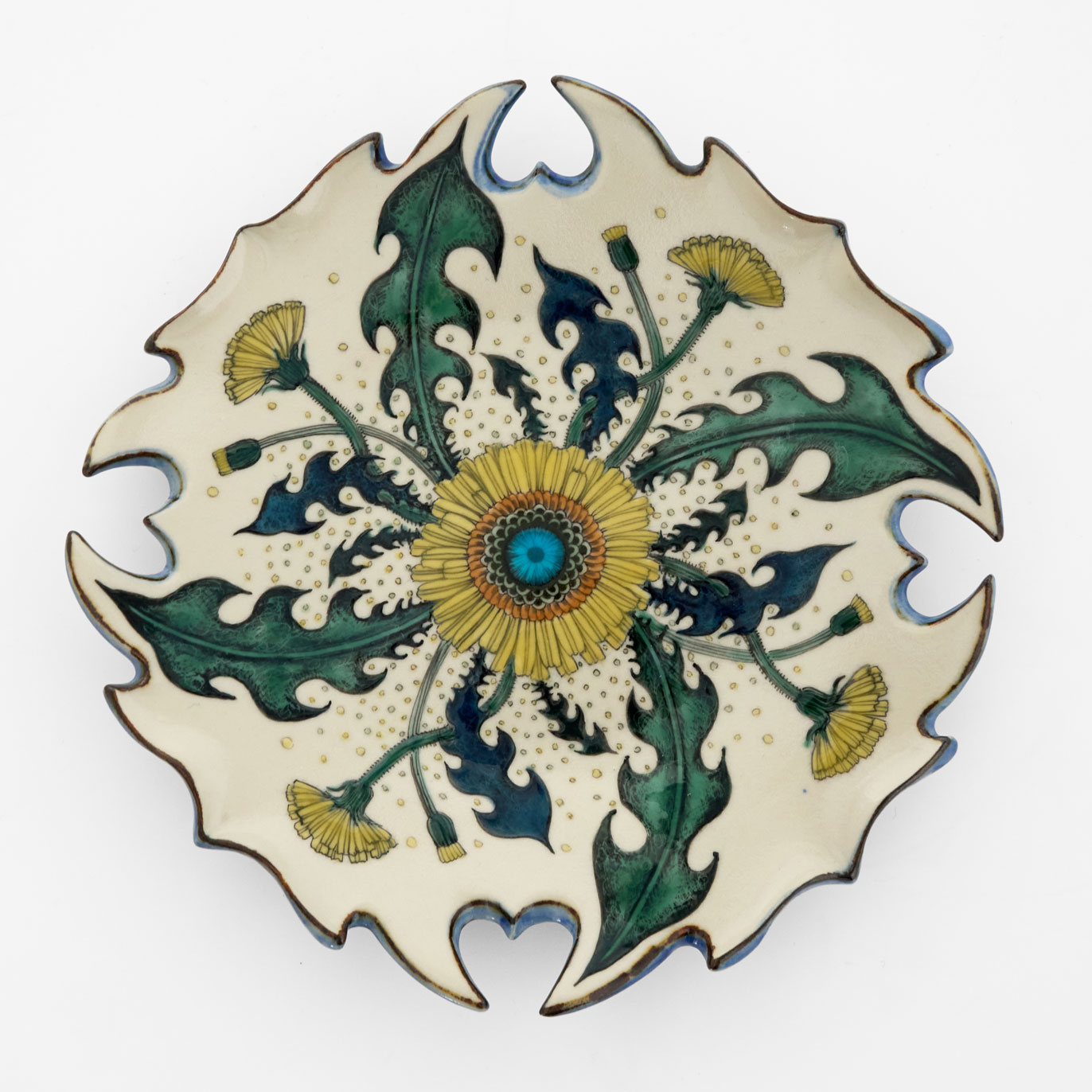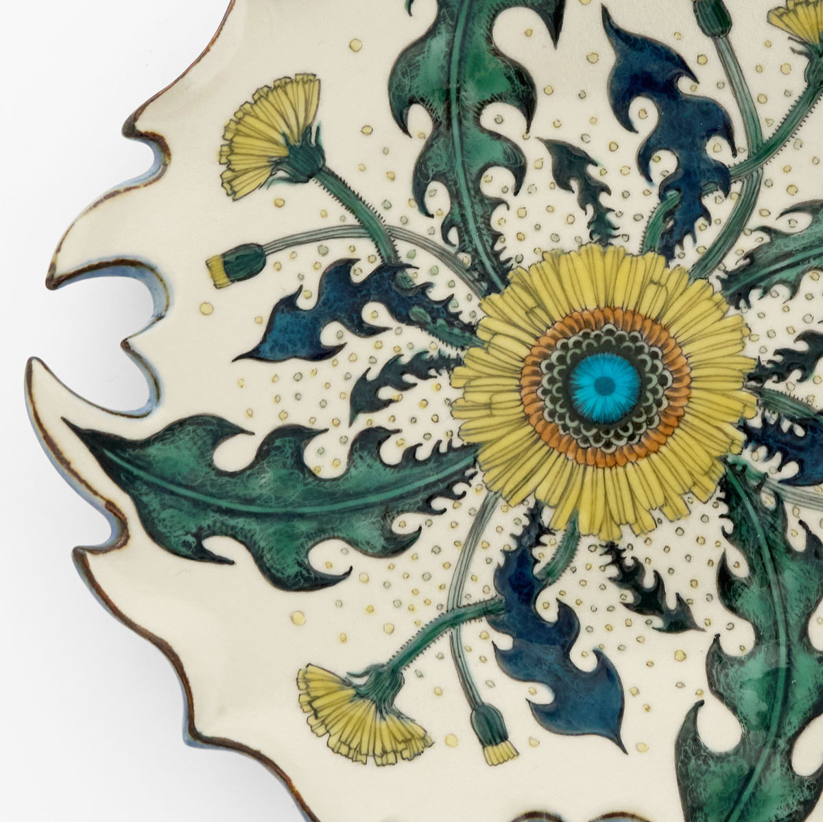 This painted plate features a dandelion viewed from directly above. The radially spreading flowers and seeds are depicted strikingly, highlighting the order and beauty of nature. Though simple in design, the composition draws the eye and conveys a sense of strength and expansiveness. Not only can it be used as a functional vessel in daily life, but it can also be enjoyed as a wall-hanging.