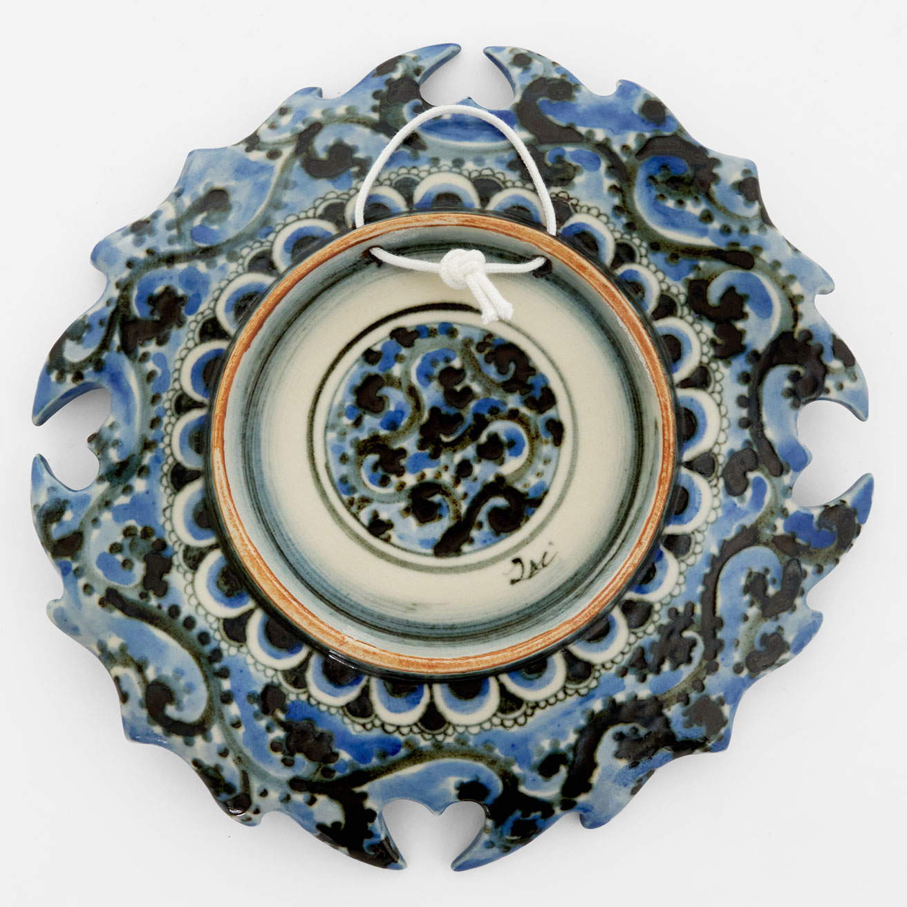 真上から見た蒲公英(たんぽぽ)をモチーフにした絵皿です。放射状に広がる花や綿毛のかたちが印象的に描かれ、自然の秩序や美しさが際立っています。シンプルでありながらも視線を引き込む構図の中に、力強さと広がりが感じられる作品です。器として日常使いできるだけでなく、壁掛けとしてもお楽しみいただける一枚です。