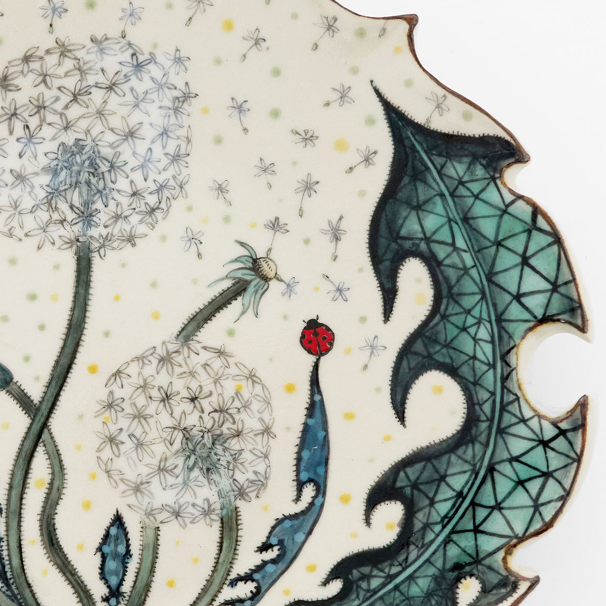 This piece features dandelions, depicting seeds drifting away on the wind. Their journey evokes new beginnings and hope for the future. Bearing the gentle message, “Good luck with your new journey,” it feels like a quiet encouragement. Not only can it be used as a functional vessel in daily life, but it can also be enjoyed as a wall-hanging.