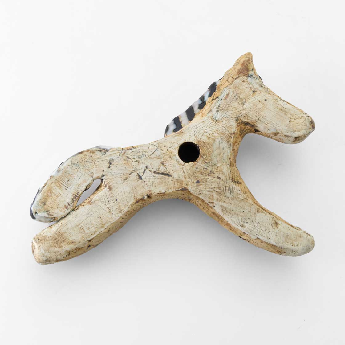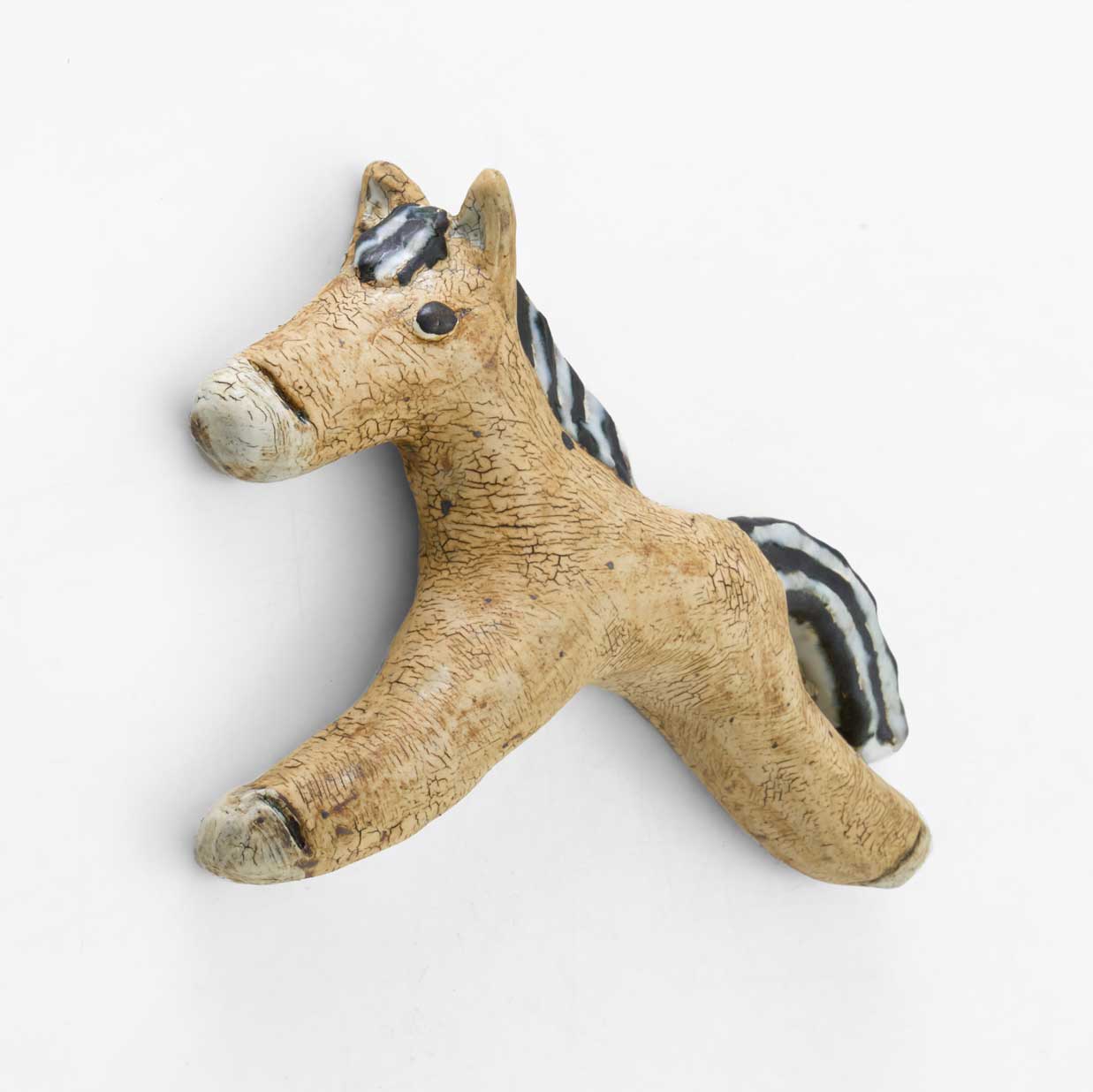 This is a wall-hanging artwork of a running horse, inspired by the zodiac animal of 2026. In Japan, the horse is considered an auspicious animal, associated with wordplay meaning “things go well” and the powerful image of a horse running, which suggests that “good fortune comes rushing in.” Its gentle expression gives it a charming appearance.