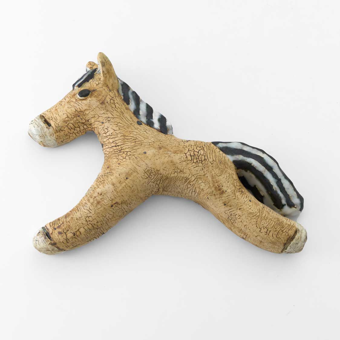2026年の干支に因んだ、走るうまの壁掛け作品。馬は「物事が『うま』くいく」「幸運が駆け込んでくる」などといわれていて、縁起のよい動物とされています。緩やかな表情が可愛らしいです。