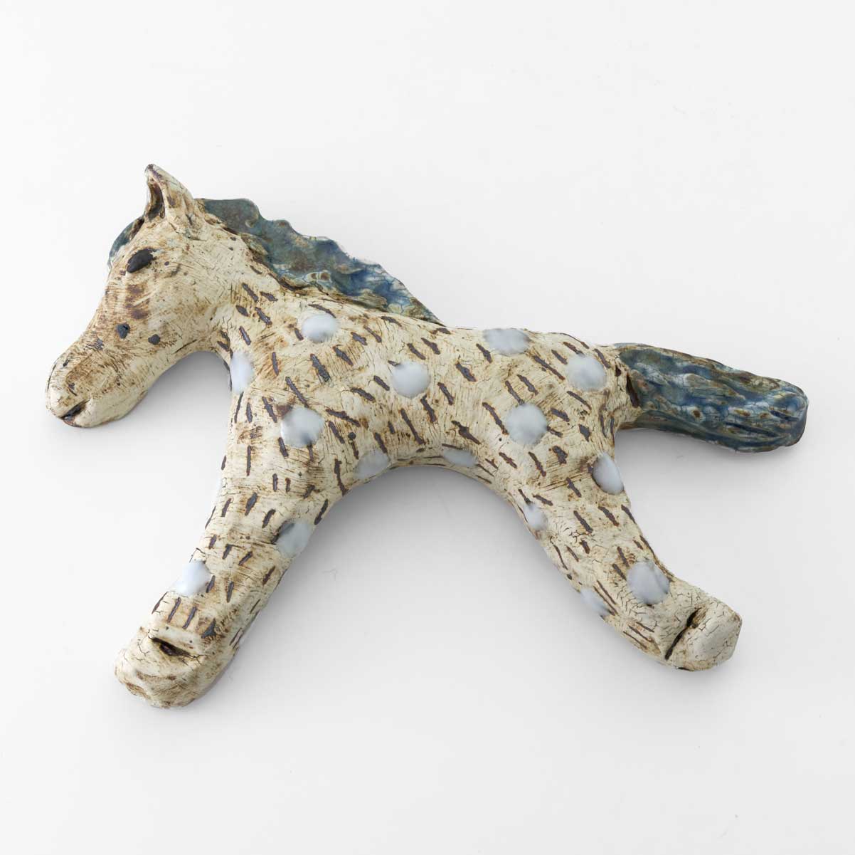 This is a wall-hanging artwork of a running horse, inspired by the zodiac animal of 2026. In Japan, the horse is considered an auspicious animal, associated with wordplay meaning “things go well” and the powerful image of a horse running, which suggests that “good fortune comes rushing in.” Its gentle expression gives it a charming appearance.