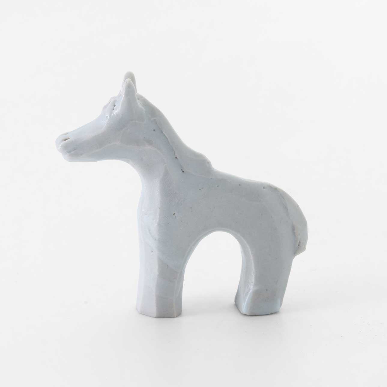 白磁で作られたシンプルなフォルムの馬。馬は「物事が『うま』くいく」「幸運が駆け込んでくる」などといわれていて、縁起のよい動物とされています。