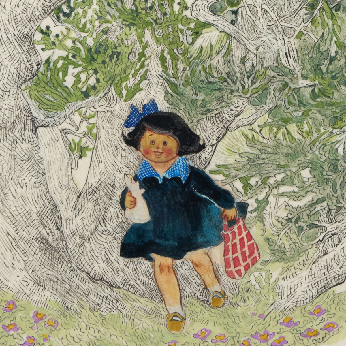 『レッスンの帰り道』お稽古バックを持った女の子が小道を歩く様子ががいきいきと愛らしく描かれています。