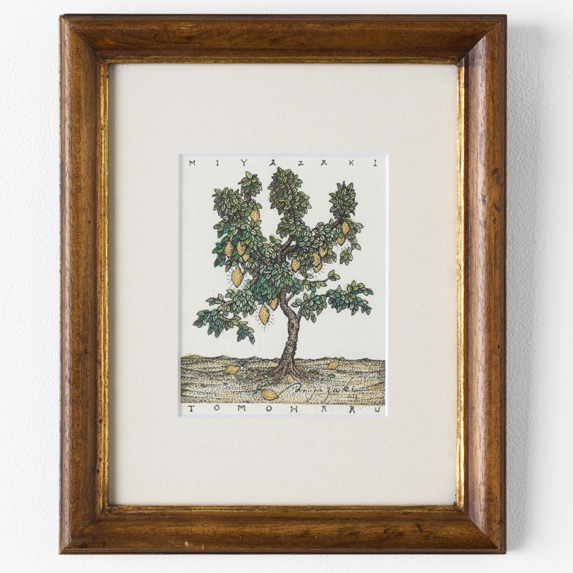 宮崎さんは20代の頃から北アフリカに通い、少年時代より憧れてきた荒野や砂漠を一貫して描いてきました。本作は、砂漠に広がる果樹園という幻想的な情景を主題とした、水彩素描による三部作の1枚です。