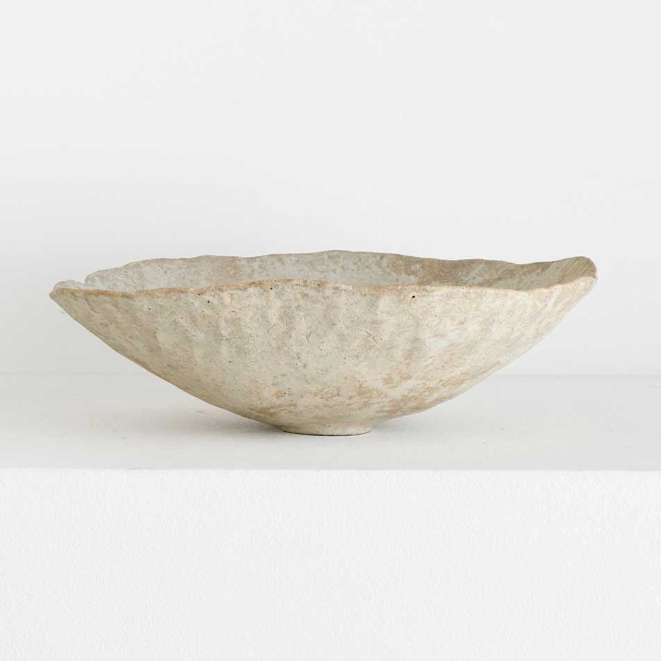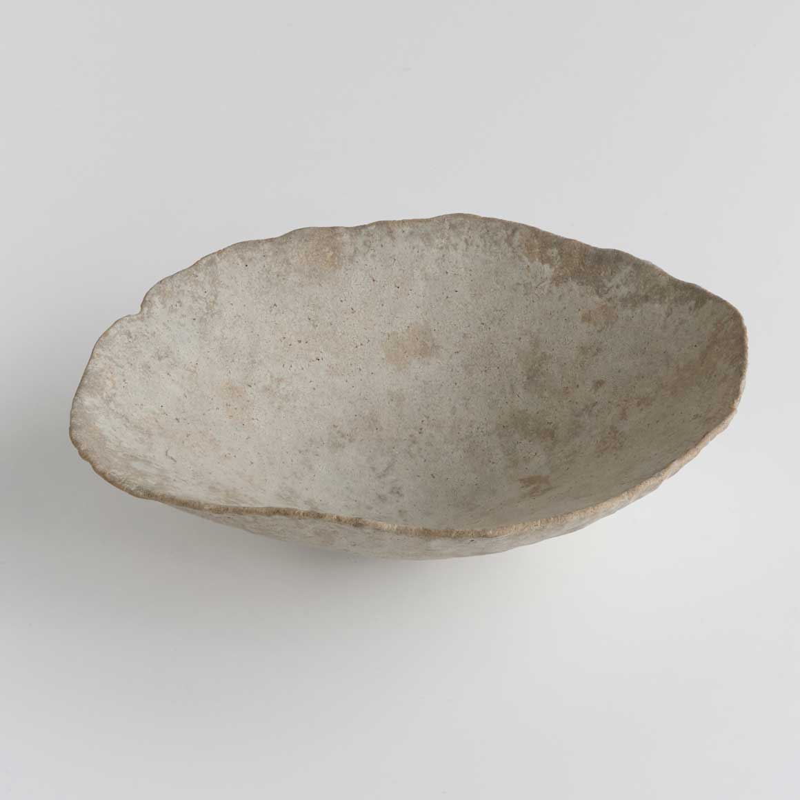 盃の文字の由来が半月からきていることから生まれた形、自分なりに造形したもので土型を作り、その型を写し取ることで作品を生み出しています。うつわとしてお使いいただけます。ご使用の際は、盛り付け前に器をさっと水にくぐらせていただくことをおすすめいたします。