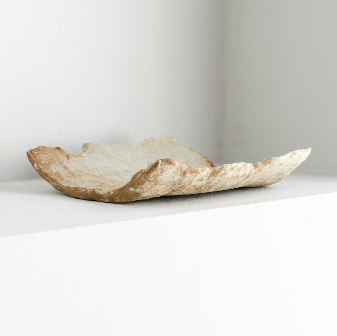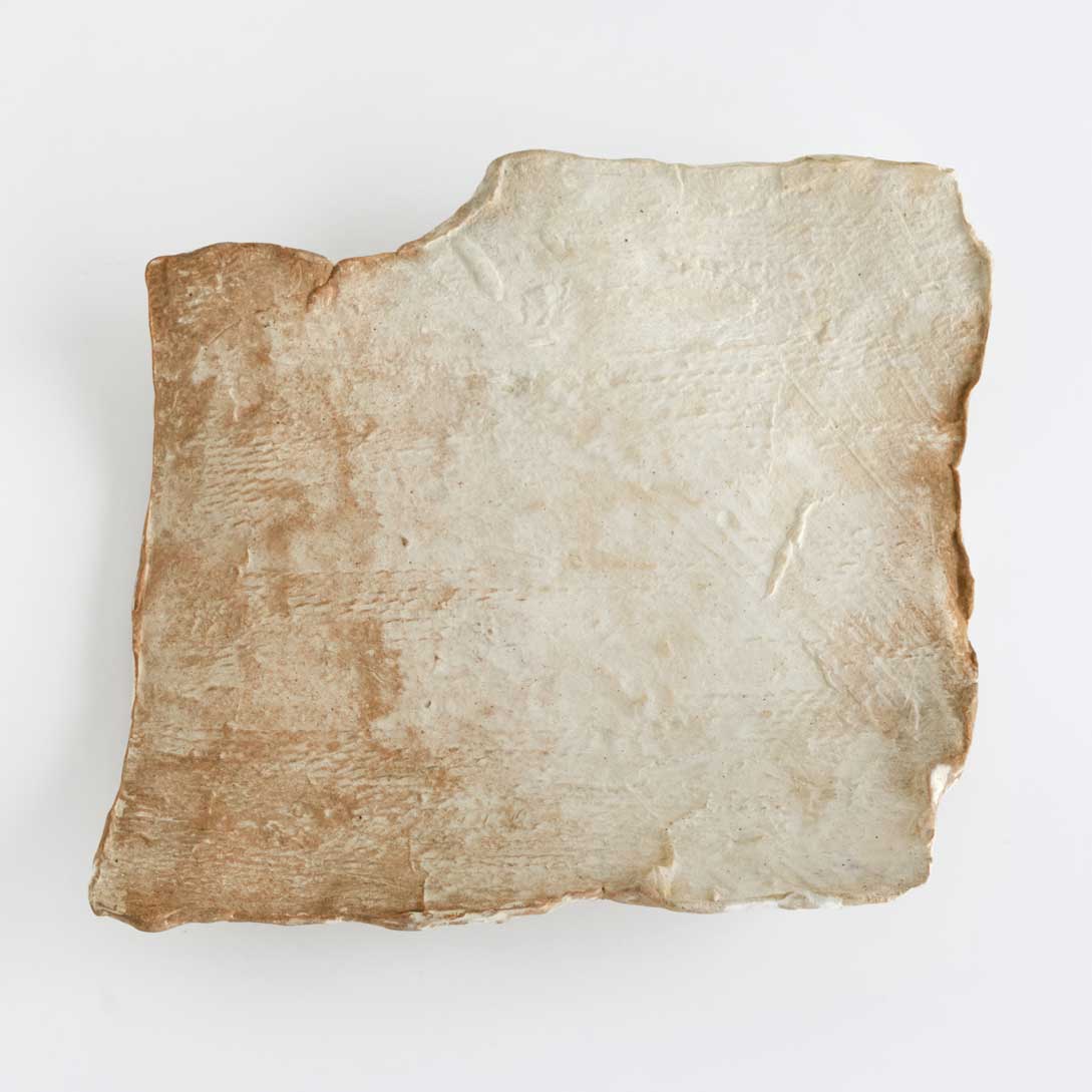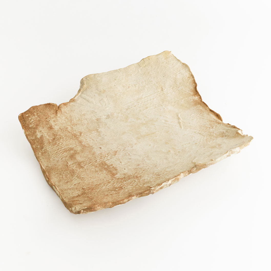 平安時代の瓦の凹面から土型を作り、その型を写し取ることで作品を生み出しています。うつわとしてお使いいただけます。ご使用の際は、盛り付け前に器をさっと水にくぐらせていただくことをおすすめいたします。