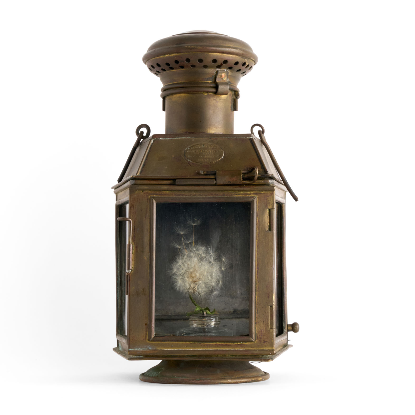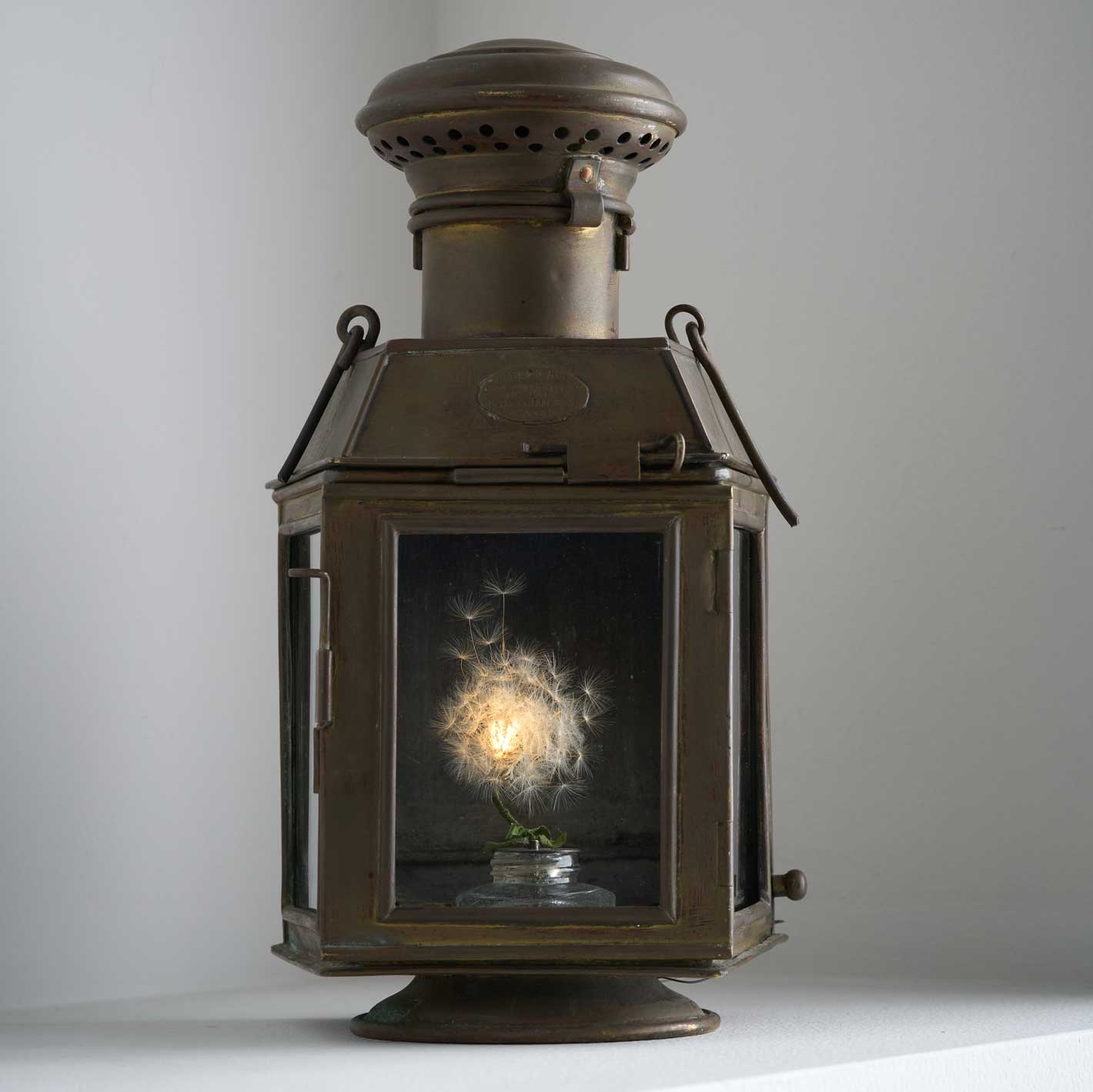 This piece combines antique objects and plants to evoke the imagination of a mysterious world. Using an old French lantern, its form and charm are preserved as much as possible while transforming it into a new piece.