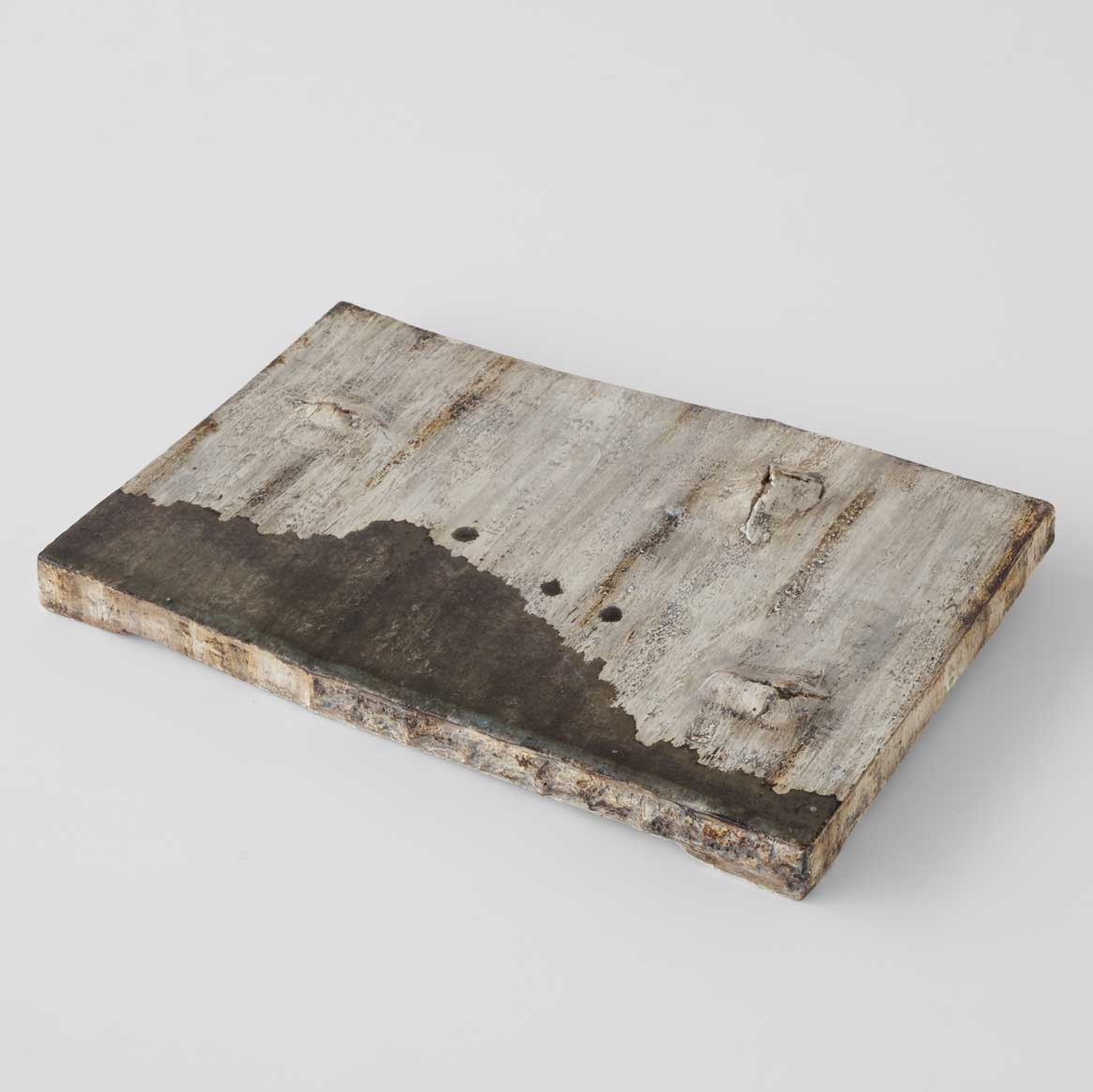 大地に雨が降り注ぐ情景を思わせるような板状のオブジェです。板皿としてもご使用いただけます。