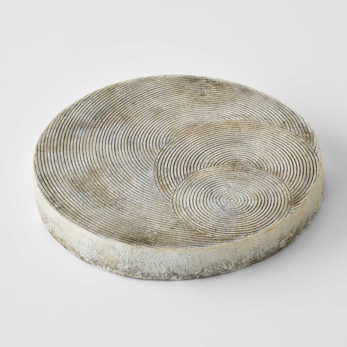 波紋のように広がる紋様が印象的な、プレート状の作品です。