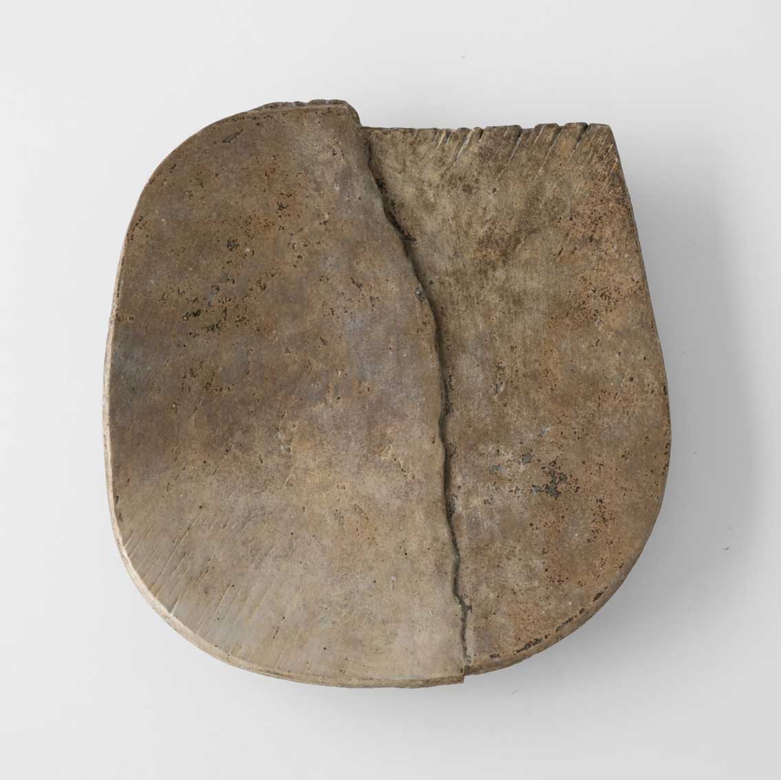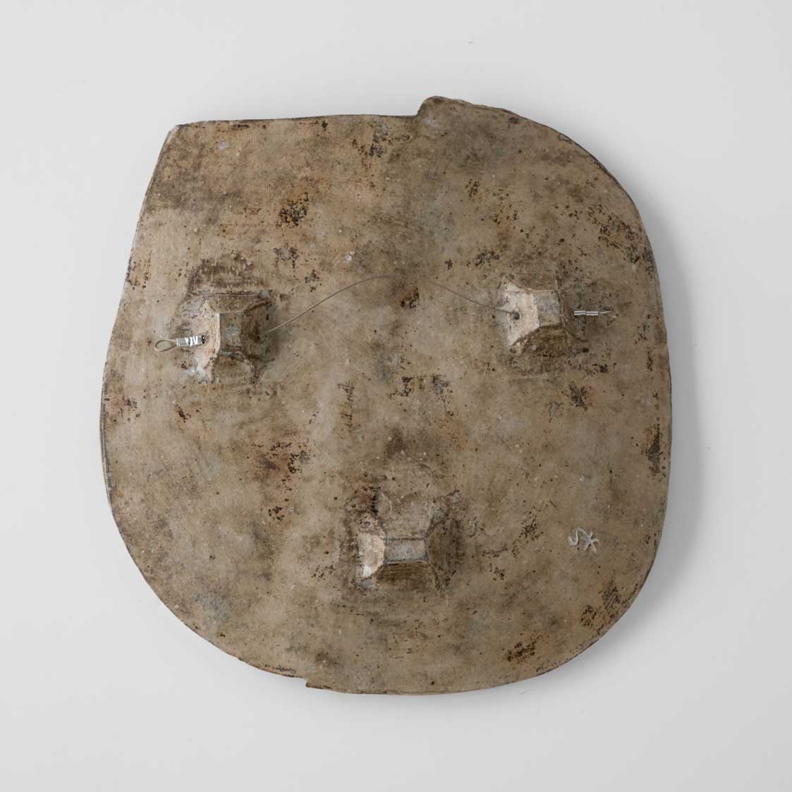 種類の違う土を塗り分けることにより模様や表情をつけた壁掛作品。幾重にも土を塗り重ね、長時間焼成によって生み出される質感が魅力です。こちらは置いてお皿としてもご利用いただけます。