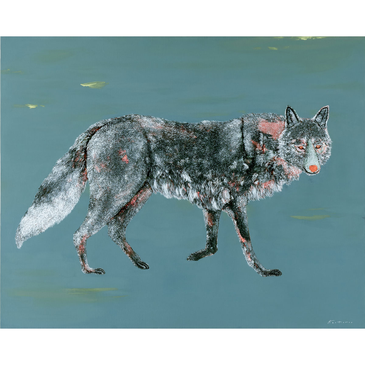This work is an exploration of the artist’s own sense of being and the contours of existence, expressed through the figure of a wolf.The wolf’s fur is rendered with Tanaka’s distinctive delicate and meticulous touch.