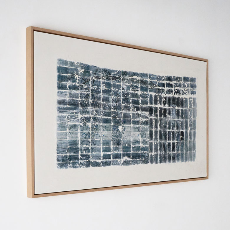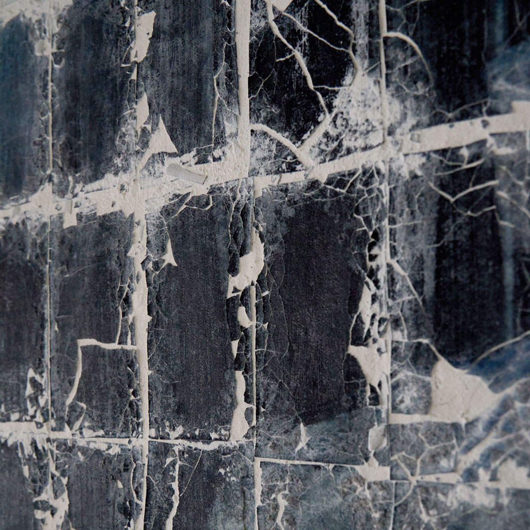 A wall-mounted work that highlights the ceramic features of “cracks” and “chips.”
