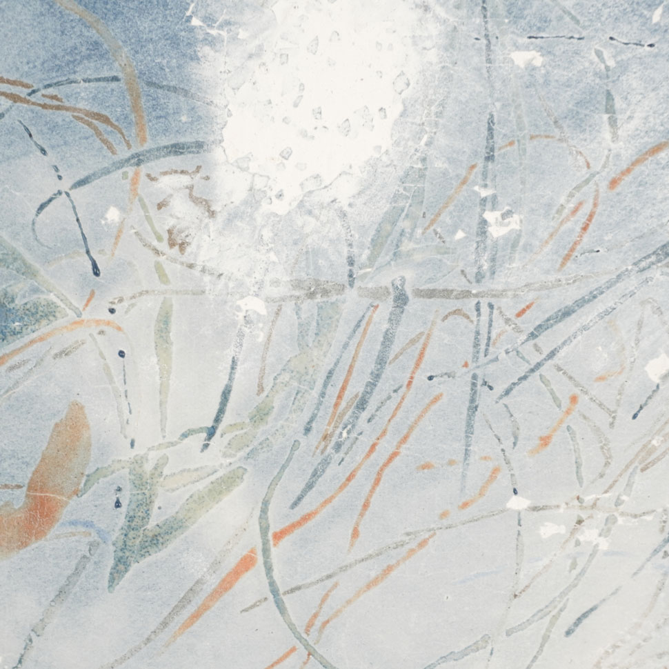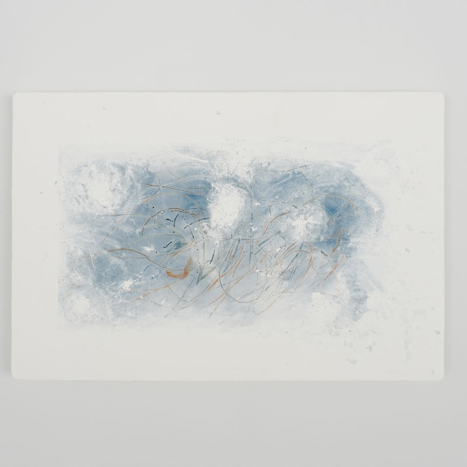 This is a wall-mounted work that emphasizes the ceramic features of “cracks” and “chips.”Thin ceramic panels, as delicate as paper, are painted with collected clay and cobalt oxide, and affixed onto a plaster base.I imagined the wind as both large and small currents passing through everything in their path. The hanging fixture on the back is in the dokko style, but it can be changed to a string-hanging type if desired.The fixture on the back is a dokko type, a traditional Japanese peg used for hanging objects, but it can also be converted to a string hanging system if desired.